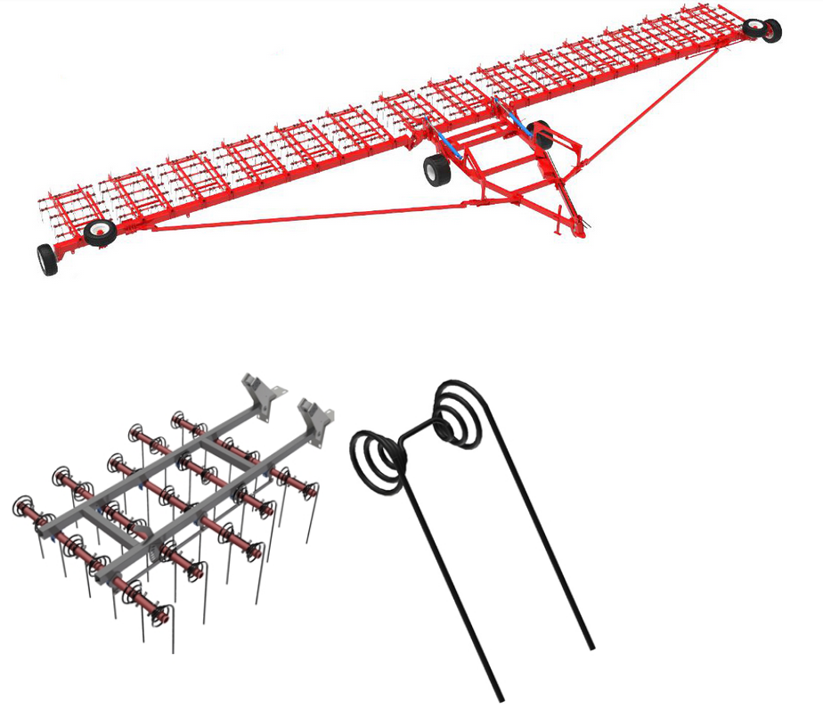 Борона пружинная предназначена для эффективной подготовки почвы. Основная сфера использования – уничтожение сорняков на посевных полях, а также – создание водного баланса в плодородном слое почв грунта и разрушение образовавшейся верхней корки. Трактор проходит с бороной данного вида, как до посевных работ, так и после сбора урожая. Поверхность поля выравнивается. Подходит для всех видов технических и зерновых культур. Борона на один проход выполняет сразу 4 операции, начиная от боронования и рыхления почвы и заканчивая заделкой удобрений.