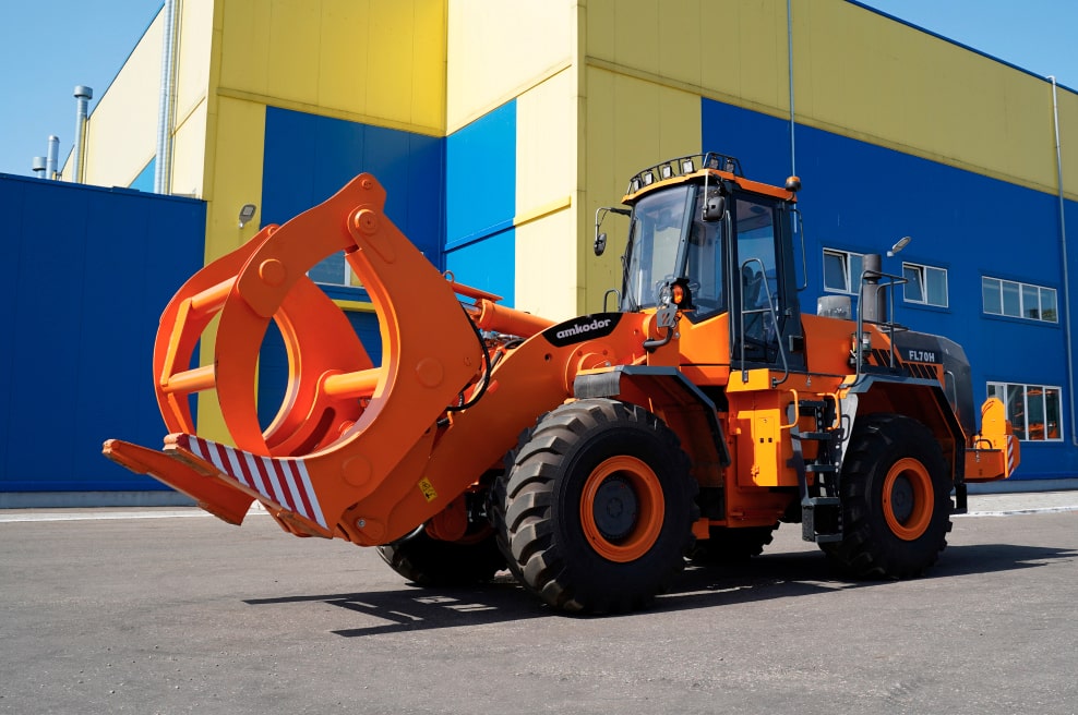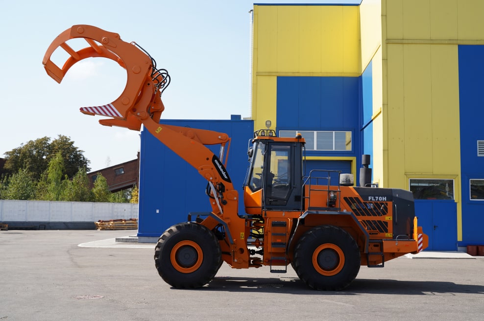 Лесопогрузчик АМКОDOR FL70H предназначен для погрузки круглых лесоматериалов на складах лесозаготовительных организаций и площадках лесоперерабатывающих предприятий в транспортные средства и в штабеля, а также разгрузки лесовозного транспорта и разборки штабелей.