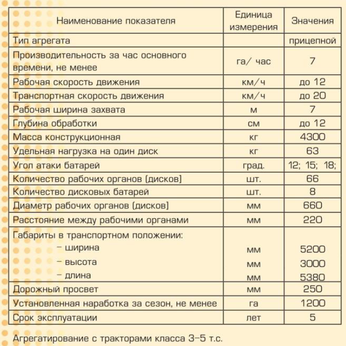Борона предназначена для работы на всех почвах, с влажностью почвы не более 35%, уклоном поверхности поля не более 10°, твердость почвы в обрабатываемом слое не более 3,5 МПа.
