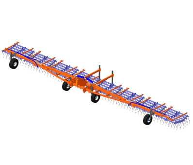 Борона составлена из восьми самостоятельных секций. Каждая секция индивидуально вешается на подвесе за счет цепей что создает нежесткую конструкцию и позволяет идеально копировать рельеф почвы. Расположение пружинных зубьев обеспечивает нарезку борозд (т.е. один зуб следует за другим) что дает обработку с минимальными просветами.