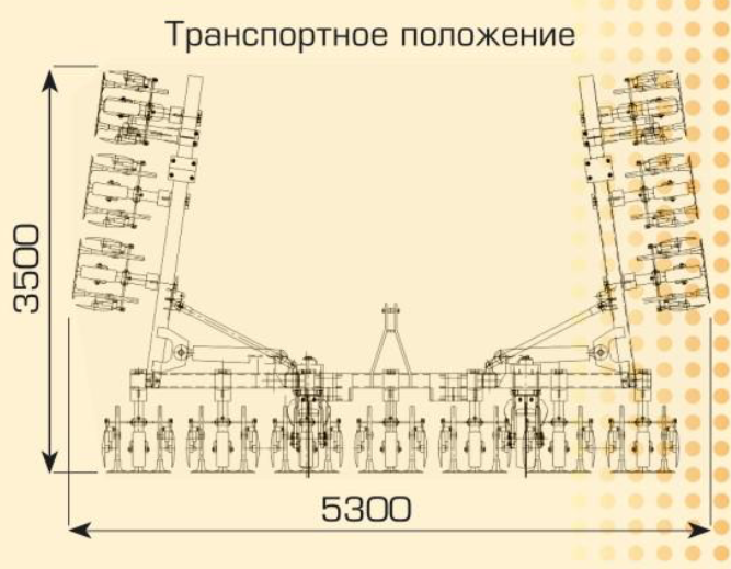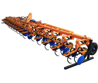 Параллелограммное устройство культиватора обеспечивает точное копирование рельефа почвы с уклонами более 5º, а наличие винтовой пары с упорной резьбой на стойке опорного колеса с мерной шкалой на каждой секции дает возможность точной регулировки глубины обработки.