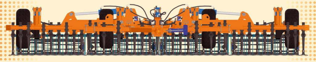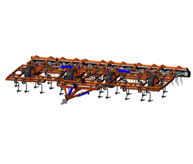 Четырехрядное расположение культиваторных лап с шагом по следу 170 и 230 мм, дополнительным усилителем пружинной стойки, высокое расположение рамы, наличие 3-х рядов пружинных зубьев с регулируемым углом атаки обеспечивают высокую проходимость культиватору и универсальность его применения.