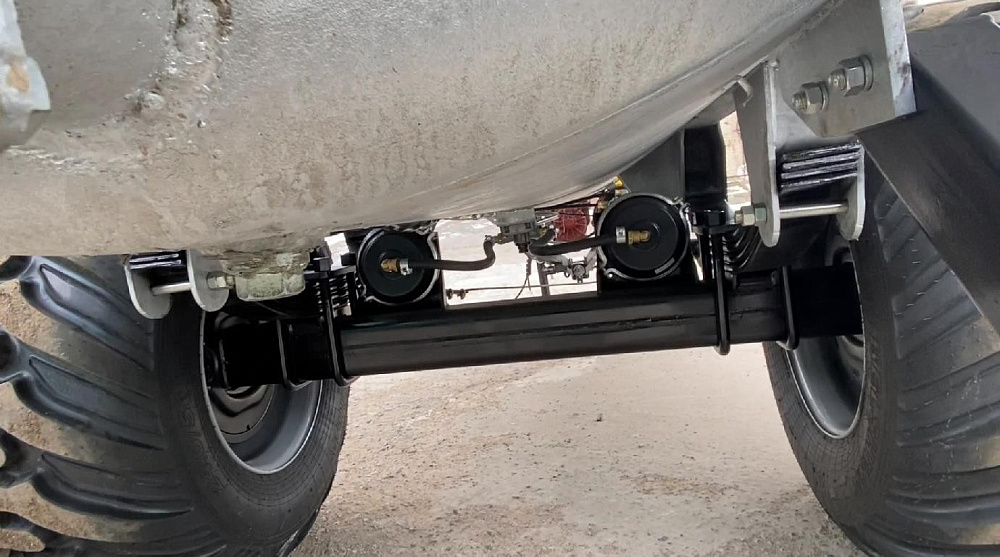 Опциональной особенностью машины МЖТ-Ф-6-2 является одноосная рессорная ходовая подвеска на шинах низкого давления и использование вакуум-компрессора.