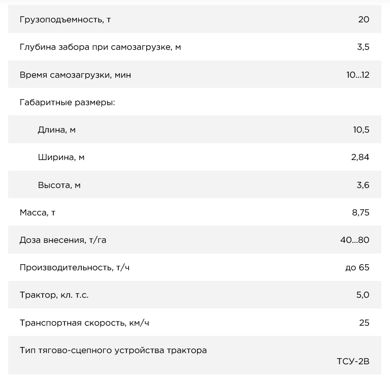 Резервуар, загрузочно-разбрасывающее устройство, гидропривод, тормозная система и электроосветительная аппаратура унифицированы с базовой машиной МЖУ-20.