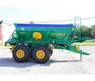 РУ-7000-1 имеет механический привод (от ВОМ-трактора) распределяющих центробежных органов (тарелок) и гидравлический привод подающего транспортера от гидросистемы трактора. Программирование и контроль дозы внесения осуществялется бортовым компьютером.