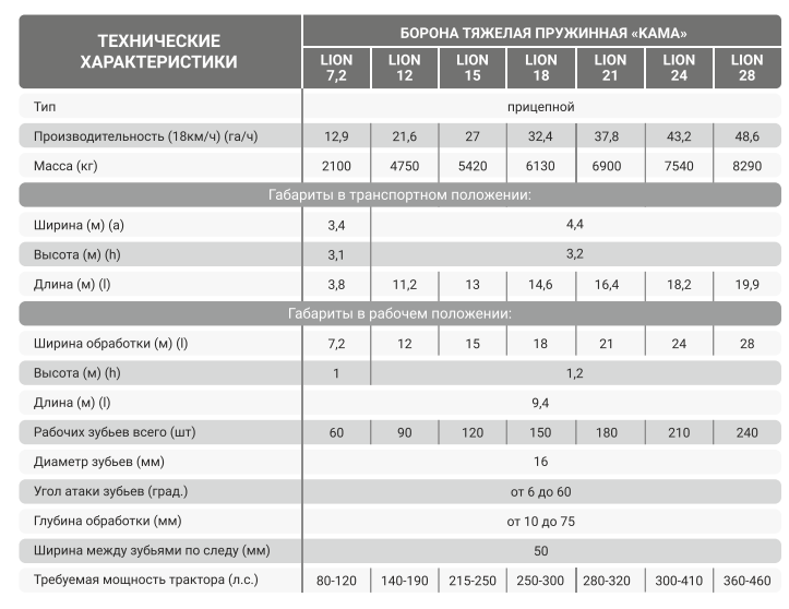 Операция подготовки бороны к работе или транспортировке занимает не более 15 минут, и может быть выполнена одним человеком.