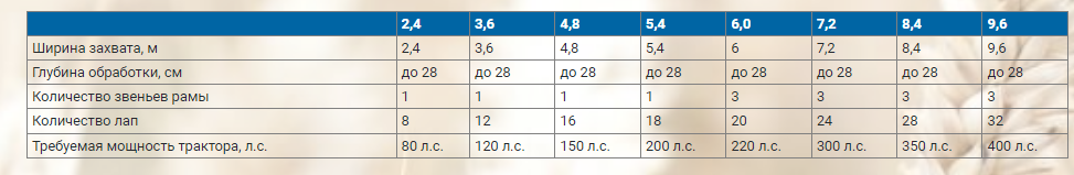 Комплектуется мощными стойками из пружинной стали, установленными на двухпружинных амортизаторах. Стойки отклоняются при наезде на препятствия, что предотвращает их поломку. Пружинные стойки при работе совершают колебательные движения и лучше разрыхляют пахотный слой.