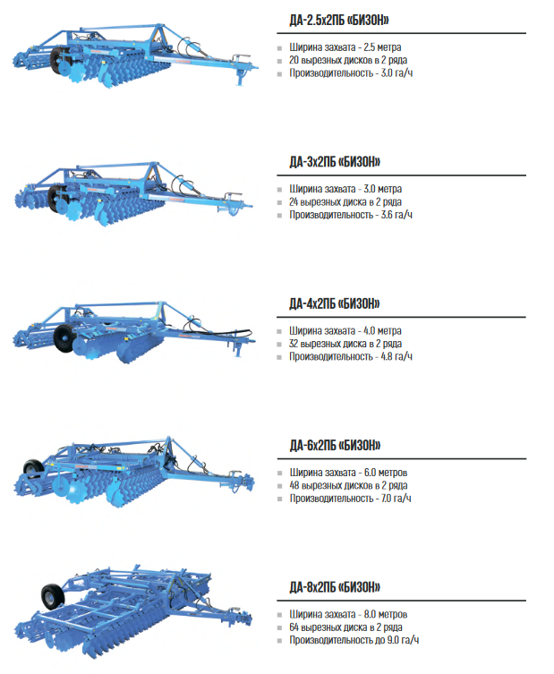 Дисковые агрегаты «Бизон» — известные и надежные машины, созданные совместно с учеными Российской Академии наук специально для российских агроклиматических условий, отлично зарекомендовавшие себя в различных регионах РФ. Предназначены для предпосевной обработки почвы, подрезания сорной растительности, мульчирования почвы с растительными остатками, выравнивания поверхности поля, а также для перепашки кормовых угодий и рекультивации паров.