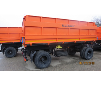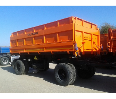Двухосный самосвальный прицеп ТЗА-8551-02 предназначен для перевозки различных сельскохозяйственных грузов, в том числе минеральных удобрений, а также сыпучих строительных грузов. Объем платформы составляет 20 куб.м., разгрузка на 2 стороны. Подвеска рессорная, двускатная ошиновка (9.00R20).Технические характеристики