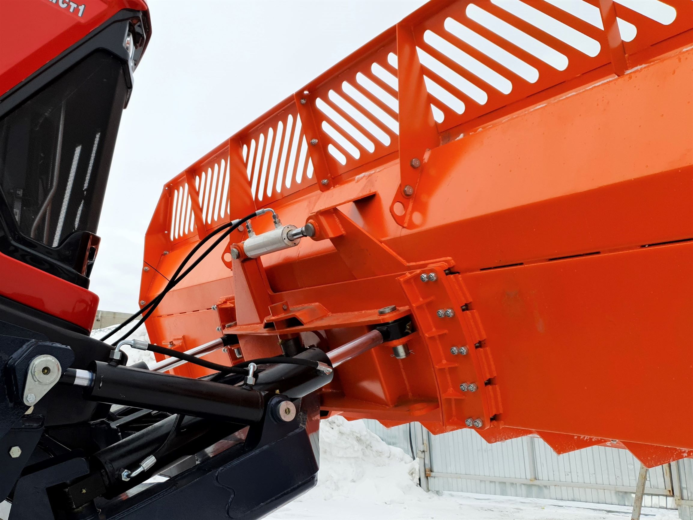 Срок службы оборудования увеличен, за счет установки двух гидроцилиндров на поворот отвала. Даже при ударных нагрузках на край лопаты нагрузка на гидросистему отвала и трактора распределяется равномерно, и гидросистема служит дольше.