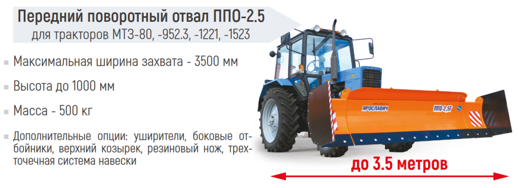 Отвал ППО-2,5 может с успехом применяться в коммунальном и сельском хозяйстве.