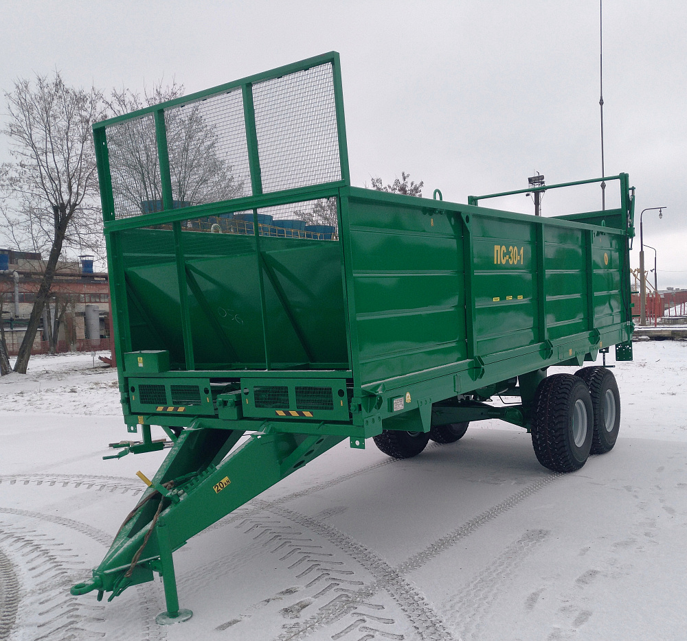 Полуприцеп специальный ПС-30-1 предназначен для приема и транспортировки измельченной массы кормовых культур от кормоуборочных комбайнов, последующей ее доставки к месту хранения и выгрузки назад конвейером, а также для перевозки других легковесных грузов с удельной массой до 400 кг/м3.