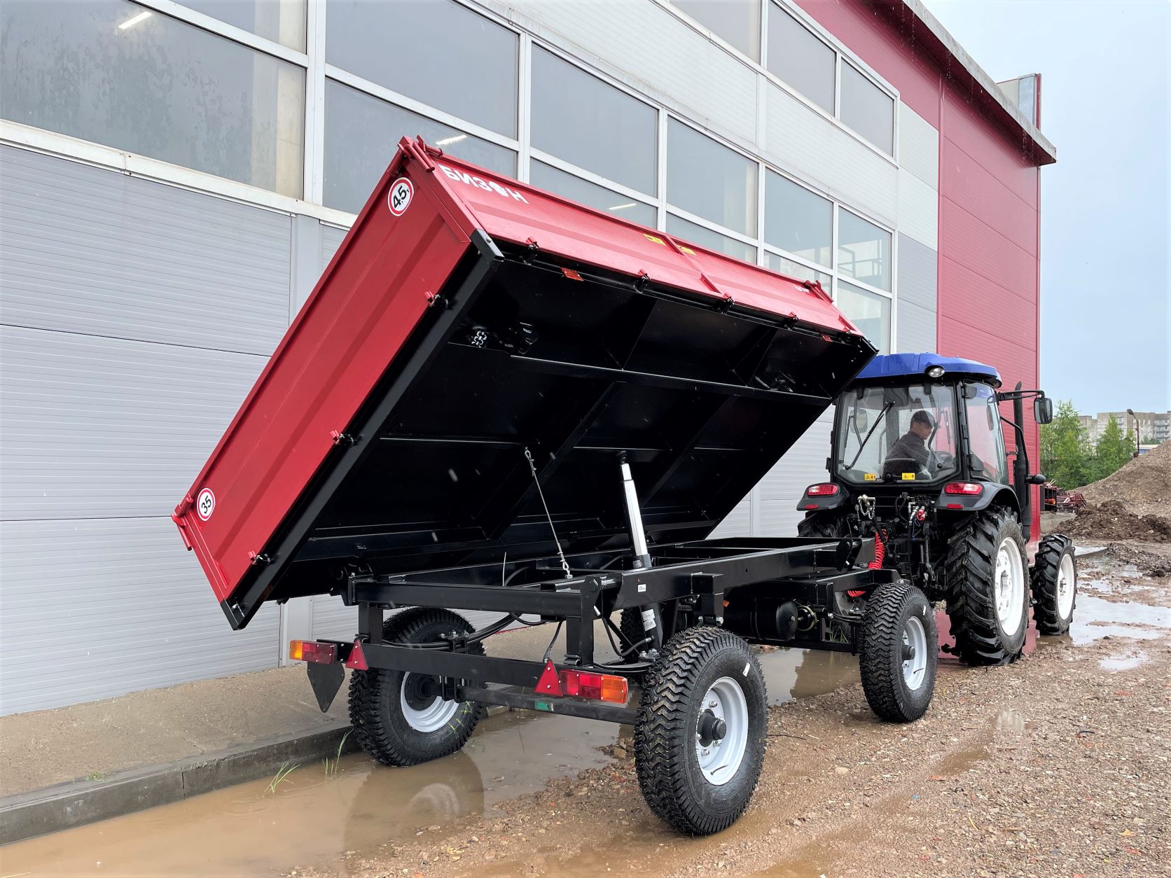 Тракторный самосвальный прицеп БИЗОН 2ПТС-4,5 предназначен для перевозки сыпучих и штучных грузов, массой не более 4,5т.