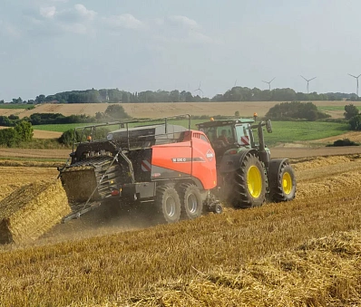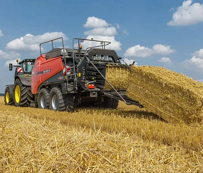 Прессовальный канал длиной 3,75 м в сочетании с системой регулировки давления обеспечивает оптимальный контроль плотности тюков. В конструкцию машины встроены высокопрочные сменные износостойкие пластины для формирования тюков в условиях уборки сухих пылевидных энергетических культур. Воронкообразная дверца под давлением и конструкция верхней дверцы с 7 перекладинами гарантирует создание идеальных тюков и обеспечивает дополнительное трение.