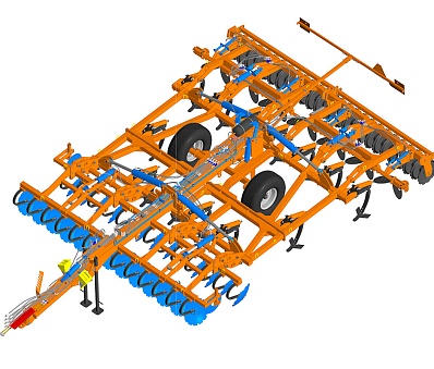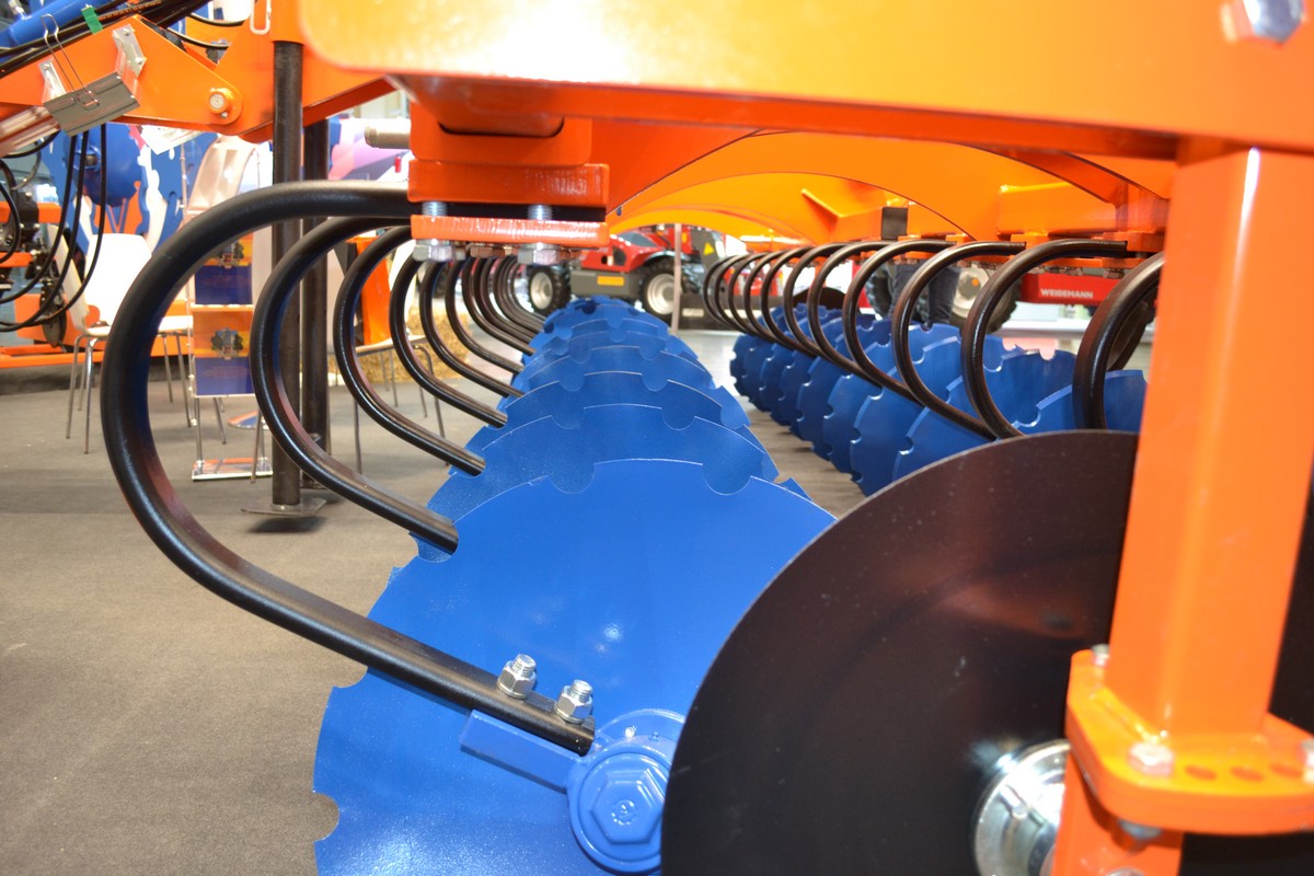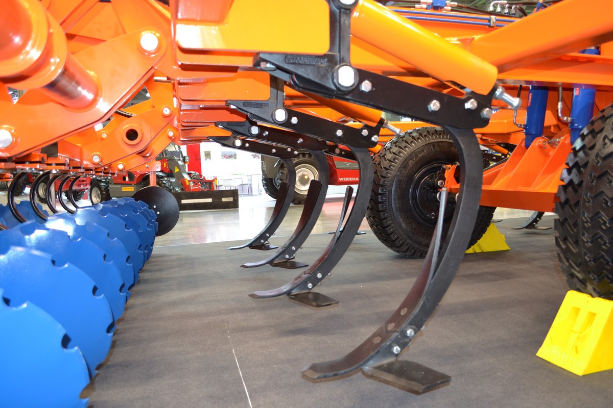 Первая зона обработки представляет собой двухрядную дисковую борону с режущими узлами на пружинной С-образной стойке с диаметром диска 610 мм. Глубина обработки данными узлами составляет до 15 мм, что позволяет произвести полное измельчение пожнивных остатков и перемешивание их с почвой. Пружинная С-образная стойка за счет вибрирующих движений обеспечивает полное перекрытие зоны обработки.