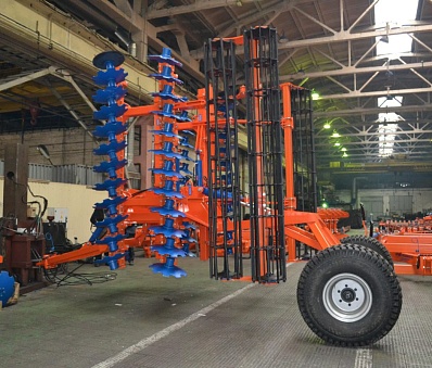 Резиновые или сдвоенные (трубчато-пластинчатые) катки обеспечивают точность регулировки глубины обработки до 1 см с одновременным выравниванием и прикатыванием почвы. Гидравлическая система позволяет комбинированное плавное управление гидроцилиндрами подъема и опускания боковых рам, сцепки и ходовой тележки при различных манипуляционных действиях.
