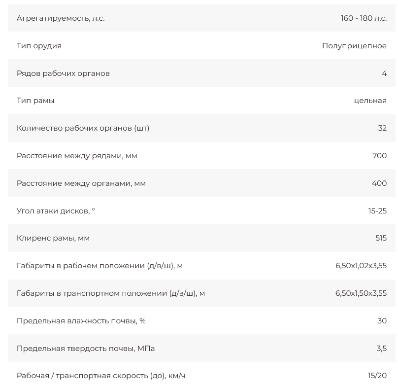 Орудие обеспечивает сплошную обработку по всей ширине захвата.