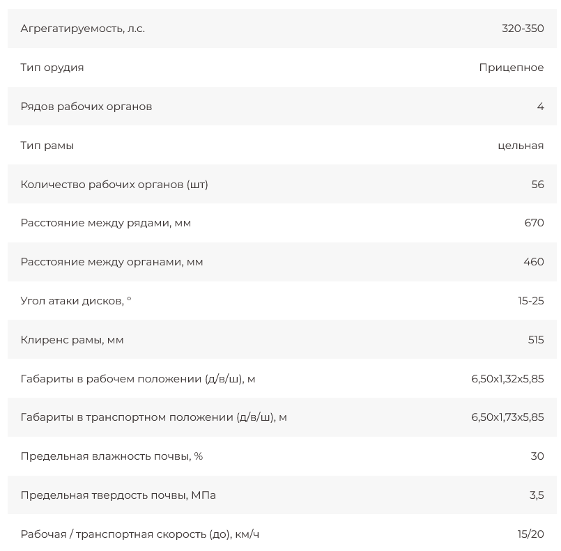 Орудие обеспечивает сплошную обработку по всей ширине захвата.
