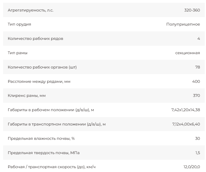 Орудие обеспечивает сплошную обработку по всей ширине захвата.