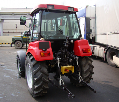Кабина: комфортабельная, безопасная, с фильтрацией и подогревом подаваемого в кабину воздуха, с теплопоглощающими стеклами, открывающимися боковыми и задним окнами, с электрическими стеклоочистителями лобового и заднего стекол и омывателем лобового стекла, со щитком приборов с электронно-информационным прибором и указателями, контролирующими и информирующими о работе систем трактора.